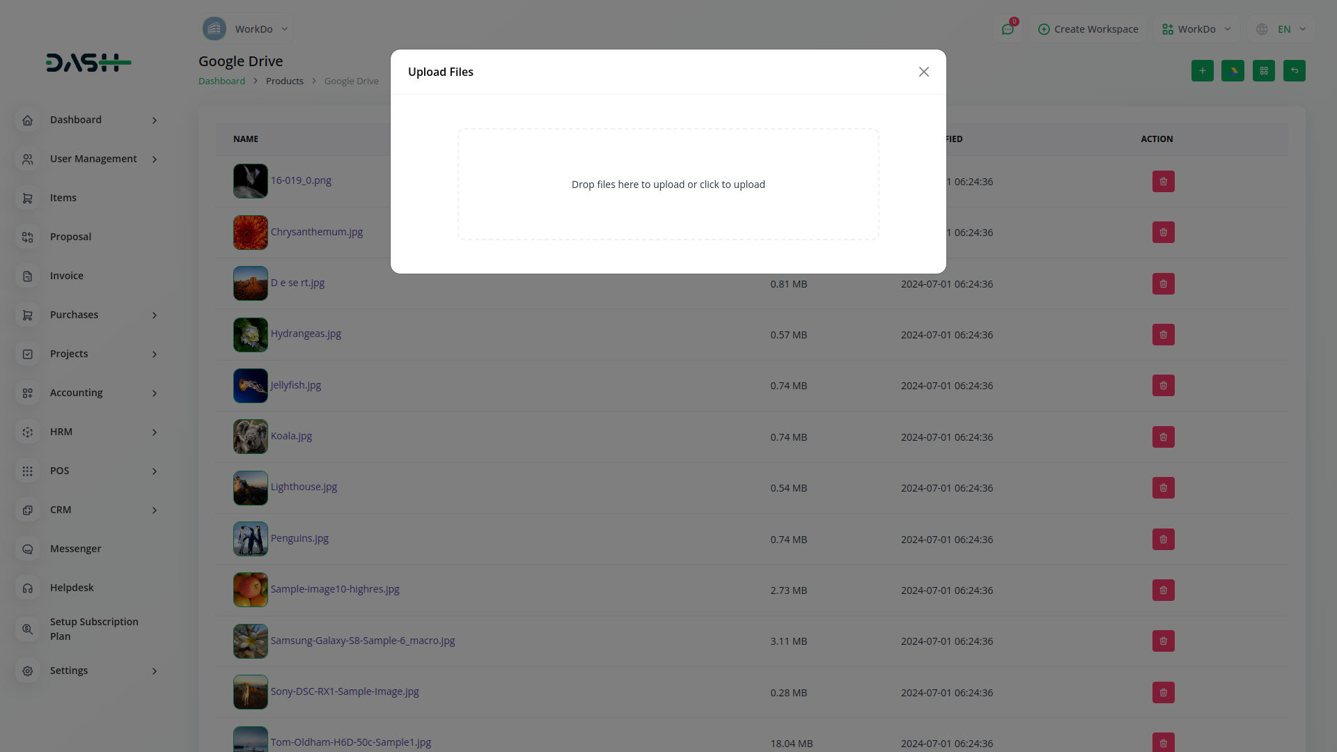 Introducing the Google Drive Module Grid View – a dynamic visual hub where your files and images come to life. With seamless integration between Workdo-dash and Google Drive, this innovative feature showcases your documents in a stunning grid layout. Effortlessly browse through your Google Drive files and images right from within our platform, providing an immersive and intuitive experience. Say goodbye to clutter and confusion – our grid view offers clarity at a glance, allowing you to easily locate and access the files that matter most.