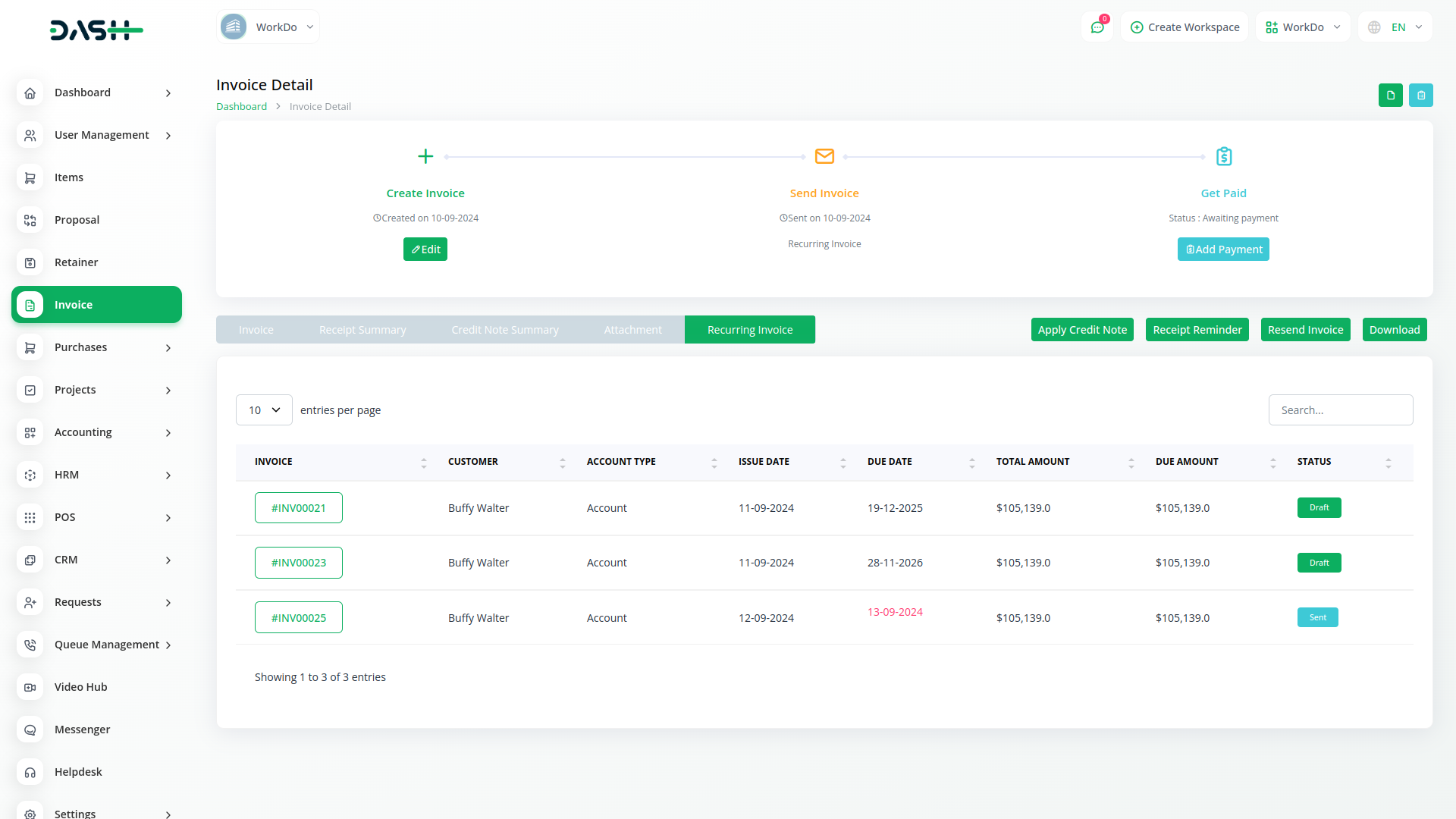 In conclusion, the Recurring Invoice/Bills Integration feature in Dash SaaS revolutionizes the way businesses manage their invoicing processes. With its intuitive interface, customizable recurrence options, and automation capabilities, Dash SaaS empowers businesses to streamline their billing operations and focus on driving growth and success. Whether you're a small startup or a large enterprise, Dash SaaS provides the tools you need to simplify invoicing and enhance efficiency. Experience the convenience and efficiency of automated recurring invoices with Dash SaaS today.