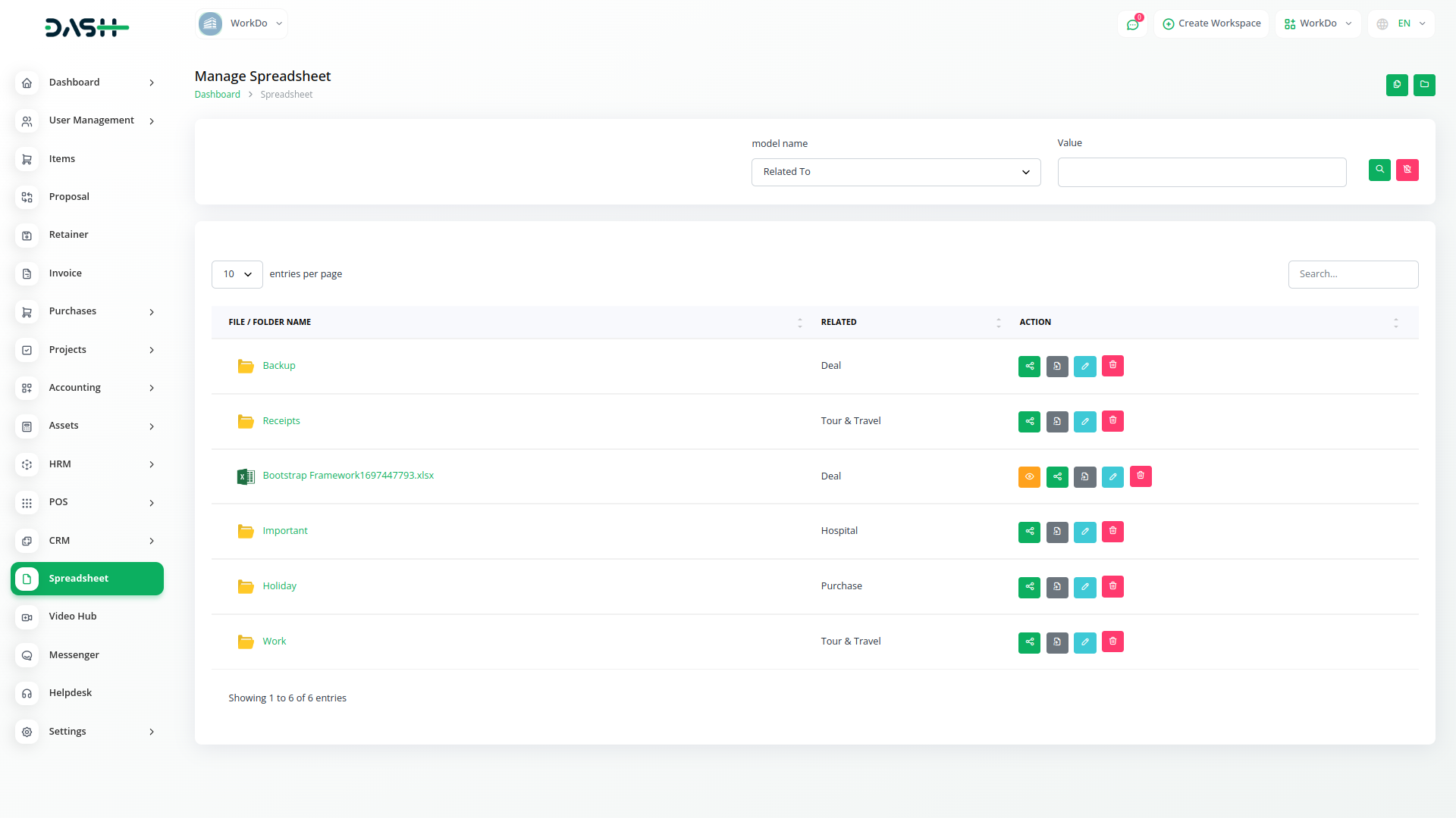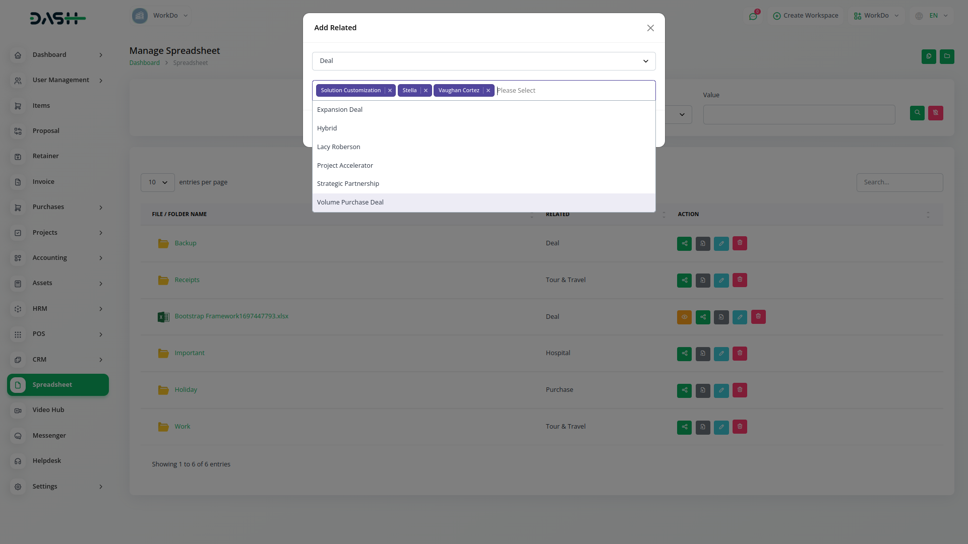 You can create subfolders within folders and share them with users. Also associate various modules like projects, leads, deals, contracts, etc., with these folders to organize related data. Additionally, you can share the folder directly within these modules for easy access, streamlining data management and collaboration.