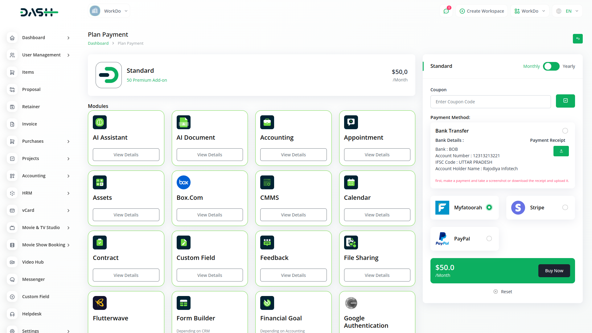 MyFatoorah prioritizes security. As a PCI DSS-compliant payment gateway, it ensures the highest level of protection for all your financial transactions. Robust fraud prevention measures and secure data encryption safeguard your customer's financial information. Additionally, Dash SaaS provides a user-friendly platform to manage your payments efficiently, giving you complete control and transparency over your financial operations.